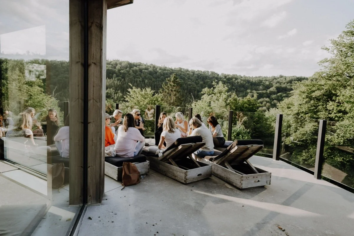 Each morning began with energising Pilates sessions, followed by a wholesome breakfast prepared by a private chef. Days unfolded with mindful outdoor adventures โ hiking through lush forests, e-MTB rides, horseback trails, or kayaking along the Semois river. Afternoons offered wellness, massages, or an extra hike or run for those wanting to push their limits. Evenings were for grounding Pilates, golden-hour aperitifs, and shared dinners that nourished both body and soul.