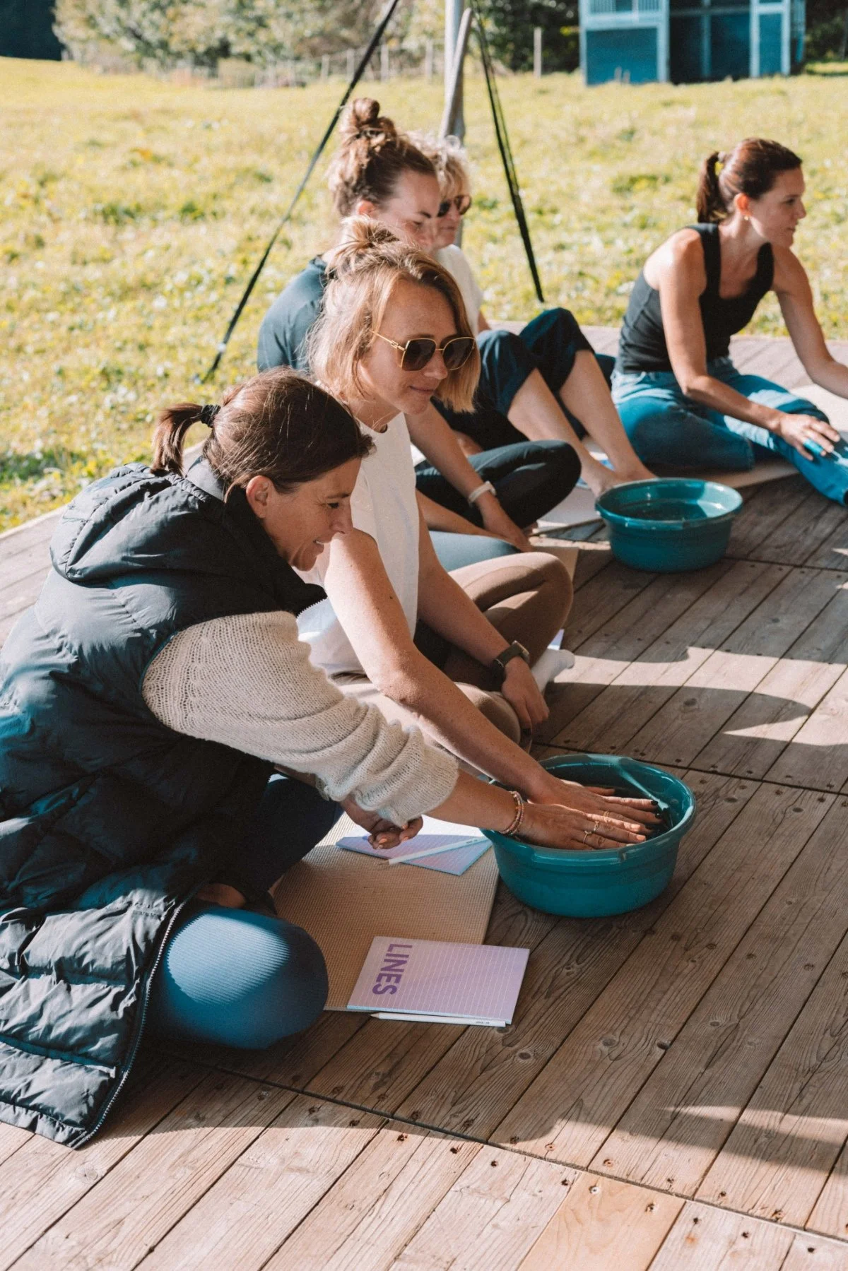The programme blended movement, stillness, and inspiration: forest bathing, scenic hiking, an introduction to cold therapy, a shared outdoor lunch with our magazine launch, more hiking, a grounding yoga session, and an aperitif to close the day.