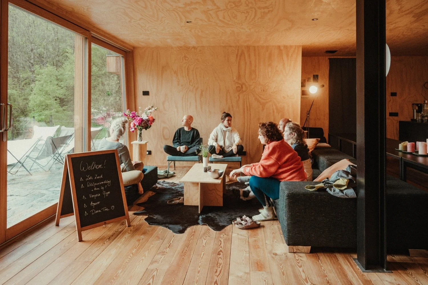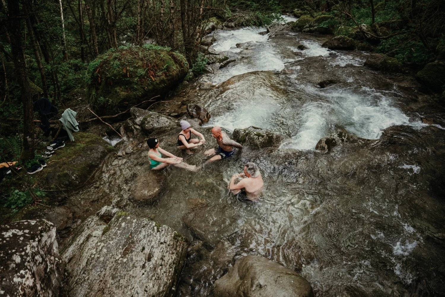 Think sunrise hikes, cold rivers, fireside conversations, and the kind of stillness that changes things. Plus a good dose of care: hot saunas, grounding food, massages that go deep.